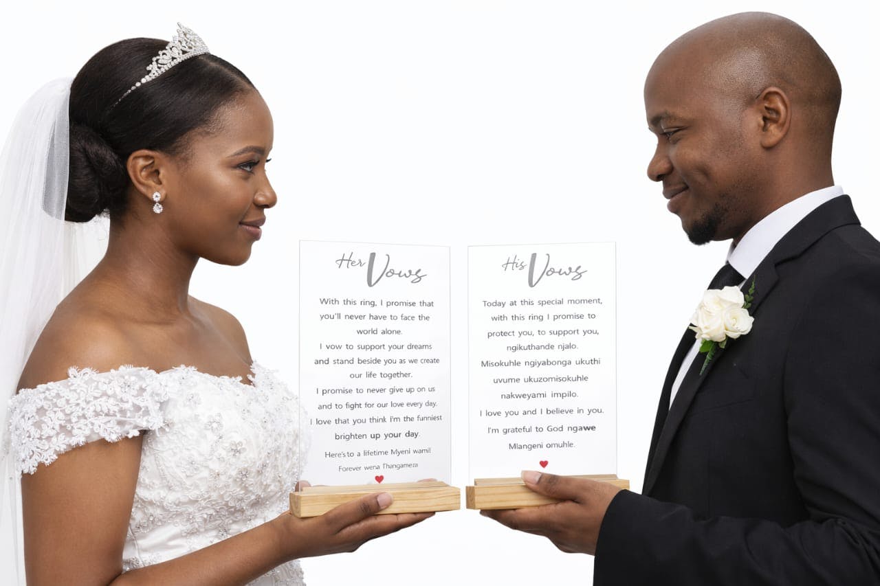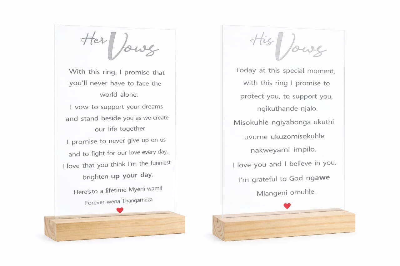 Available in two sizes – A5 and A4, our wedding vows plaques are crafted with premium materials and a refined, elegant finish that complements any home décor. Whether displayed in your bedroom, living space, or as part of your wedding décor, it serves as a lasting reminder of your special day.